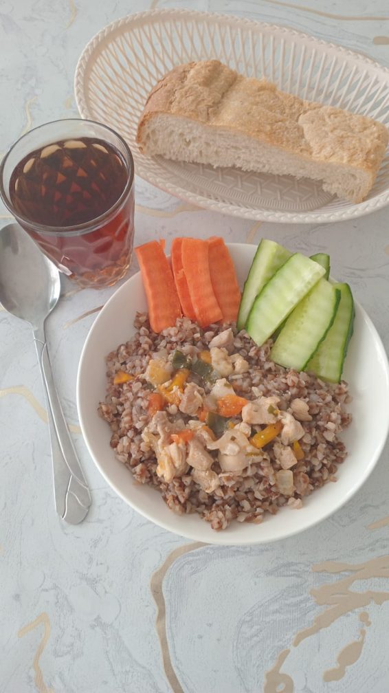 Көкөністер мен құс еті қосылған қарақұмық ботқасы