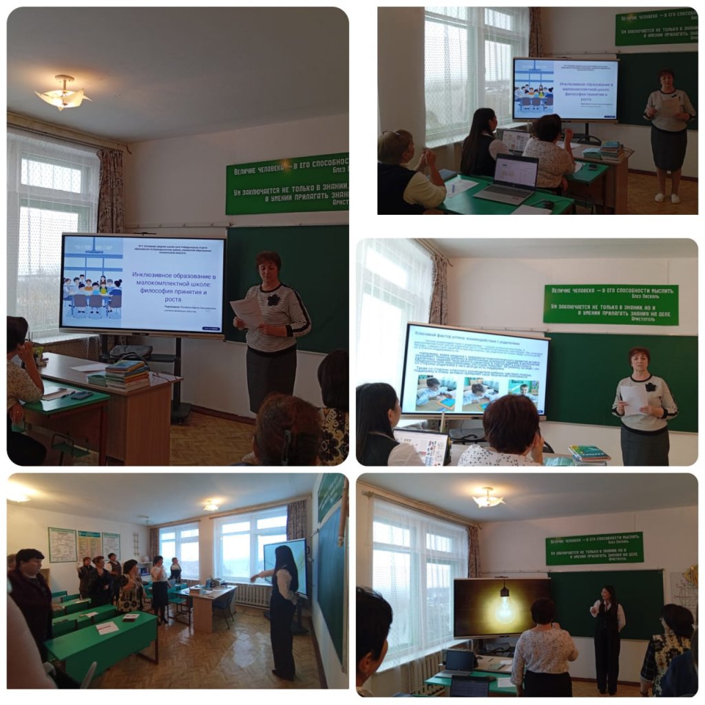 "Шағын жинақты мектеп жағдайында инклюзивті білім беру", онда барлық білім алушылар үшін қолайлы білім беру ортасын құрудың тиімді тәсілдері қамтылды,